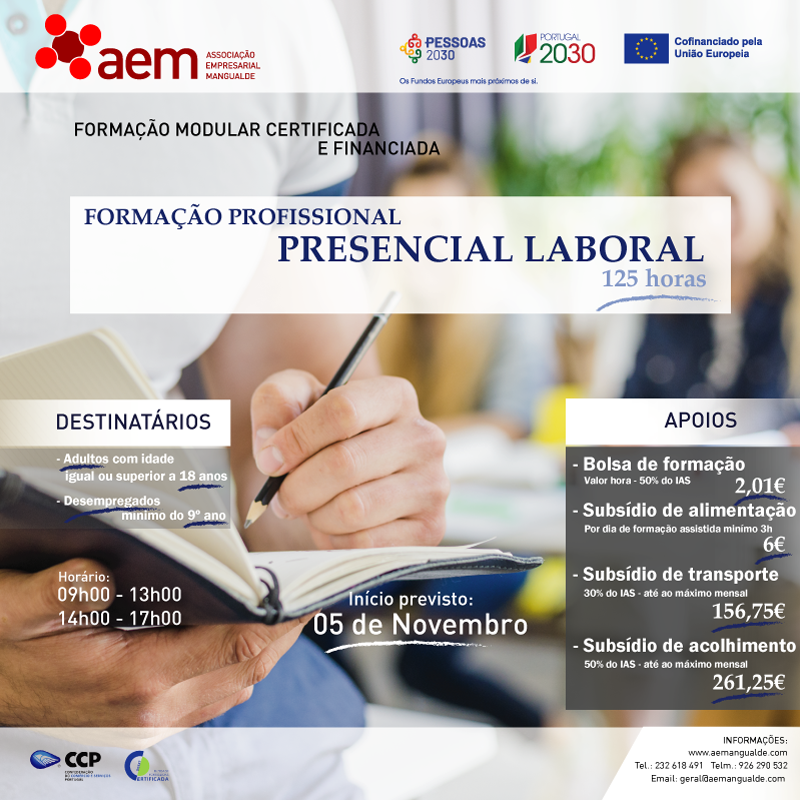 - Bolsa de formação (Valor hora: 2,01€) (50% do IAS)