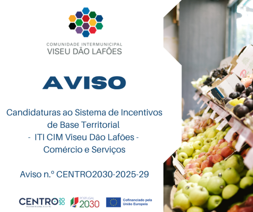 Encontra-se aberto o Aviso “Sistema de Incentivos de Base Territorial – ITI CIM da Região Viseu Dão Lafões – Comércio e Serviços” (código CENTRO2030-2025-29), integrado no Programa Regional do Centro 2021-2027.